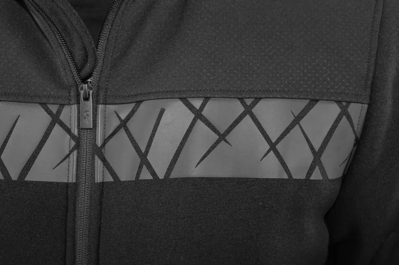 Pánska zimná vychádzková bunda z kombinovaných materiálov. Ramená a kapucňa tvoria vodeodolný softshell materiál, zatiaľ čo telo a rukávy sú z teplej pleteniny. Kapucňa a telo sú zateplené príjemným umelým kožúškom. Bunda má bočné vrecká na zips, vnútorné náprsné vrecko na zips a výraznú reflexnú potlač.